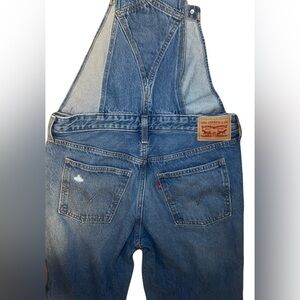 Stylish and durable Levis denim overalls . Approximately 16 inches across and 26 inch length. Super cute , can cuff up on bottom! Your next go to outfit for fall! Measurements are approximate and subject to human error. If you have any questions or need more photos, please ask.