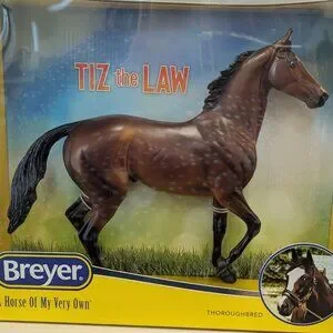 New in Box matte Tiz the Law model horse. This model was originally produced in 2021 but is now retired and is a portrait model of Thoroughbred Tiz the Law (Constitution x Tizfiz), owned by Sackatoga Stable.