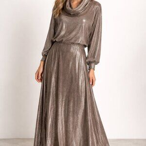 Metallic Shimmer 2 Piece Set Cowl Neck Blouse & Flowy Maxi Skirt Mob Wife