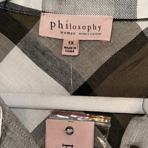 Philosophy Olive and White Checkered Button Down Shirt