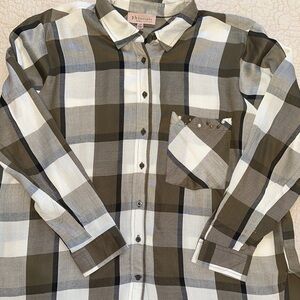 Chic checkered button down with a classic collar. Features a stylish chest pocket. Ideal for everyday wear. PTP 24 and length is 27 inches. 100% Rayon