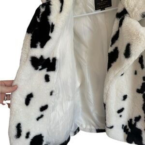 Jade & Ivory White and Black Cow Print Faux Fur Cropped Jacket, Size Small. EUC without flaw.