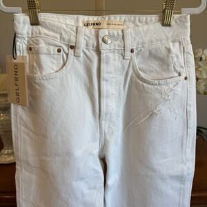 GRLFRND Karolina jeans in Brentwood. High rise fit, straight crop leg, distressed details, and raw hems. 100% cotton denim, made in Los Angeles. Size 25, brand new with tags.