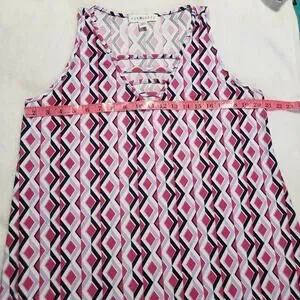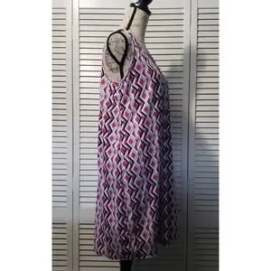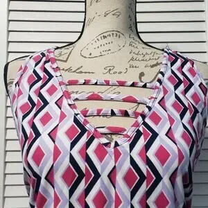 Eye Candy Sleeveless Shift Dress Women's 1X Pink Geometric V-Neck Above Knee
