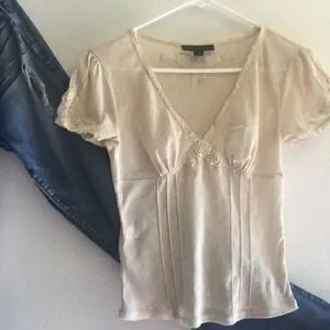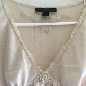 Delicate ivory blouse with the most beautiful Victorian-style detailing! My boobs have grown too big to fit into this treasured romantic top that I wore on many first dates. It was a guaranteed compliment for me. Layer over a simple cami, jeans and you've got yourself a romantic outfit for your hot Valentine's date. I guarantee you'll want to hold onto this precious top for years and passed onto your daughters. I have this vintage Express blouse in taupe too. See my listings! Reminiscent of a Dôen top too.