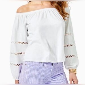 EUC Lilly Pulitzer Katt White Off-Shoulder Blouse, Size Large