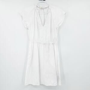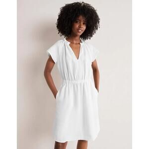 Boden White Linen Short Flutter Sleeve Dress Elastic Waist V Neck Womens Size 4