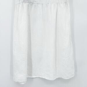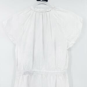 Boden womens dress in white. Crisp white Boden linen dress with a relaxed yet flattering silhouette. Features a soft V-neckline with subtle ruffle trim, short flutter sleeves, and an elastic waist for comfortable shape. Made from breathable 100% linen—perfect for warm weather, travel, and everyday wear. Effortless, timeless, and easy to dress up or down. Size 4. Excellent used condition. No flaws detected. See measurements for proper fit.