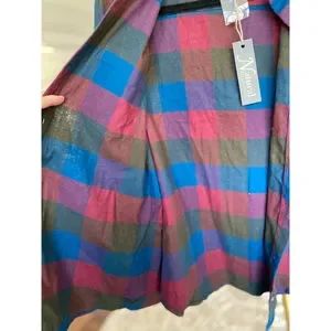 Natural Reflections Plaid Cotton Button-Up Shirt Burgundy Blue Olive Autumn Boho
