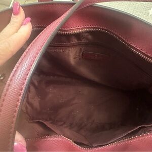 Elevate your style with this elegant, oversized Kate Spade tote in a rich cranberry/wine color. Perfect for any occasion, this bag combines functionality with a touch of luxury. Slit pocket on front. Goldtone hardware. Full close zipper, interior zippered pocket and 2 small pockets. Only used a few times. Interior and exterior in pristine condition except for a little mark , caused in storage, on front as shown in last picture. For that reason, selling this $549 tote for the very affordable price of $75