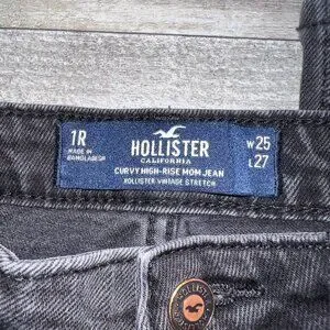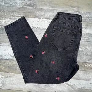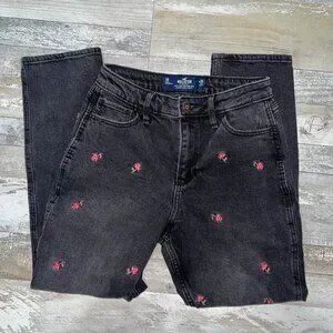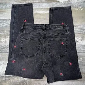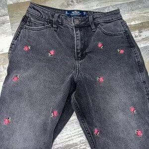 Hollister Curvy High-Rise Mom Jean Embroidered Roses Black Jean Size 1R