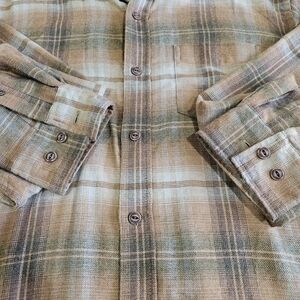 Weatherproof Vintage Shirt Mens Tan/Black Plaid Flannel Button Up Long Sleeve M