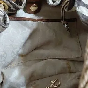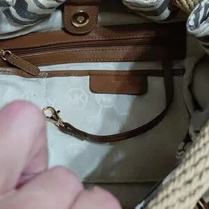 Stylish zebra print satchel. Features rope handles and signature MK charm. Perfect for any occasion.