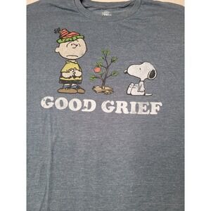 Peanuts T-Shirt Mens 2XL Blue Charlie Brown Snoopy Christmas Good Grief Graphic Tee