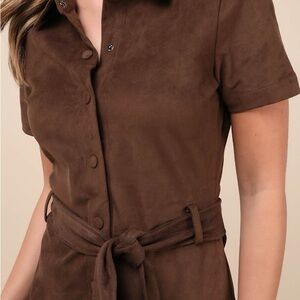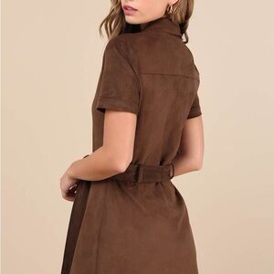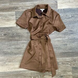 Style Name: Jolene Brown Suede Button-Up Collared Mini Dress
