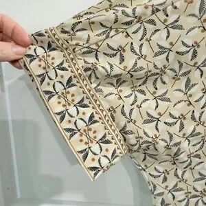 The pattern is a block print with a floral or botanical design.