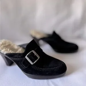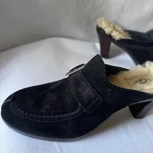 Ugg Size 7 Women’s Black Suede Shearling Heeled Clogs