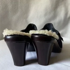 Ugg Size 7 Women’s Black Suede Shearling Heeled Clogs.