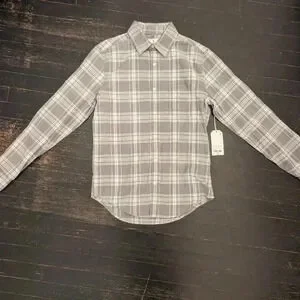 NWT Mutual Weave Grey Plaid Shirt Size Small