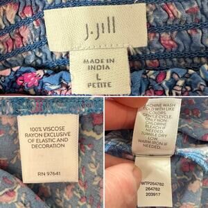 J. Jill Dainty Floral Print Soft Viscose Smocked Neck 3/4 Sleeve Blouse Sz: Lp