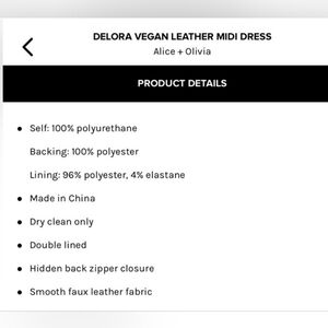 The ALICE + OLIVIA Delora Vegan Leather Sleeveless Midi Dress in size 2 is a sophisticated and stylish option for any occasion. Made from black vegan leather, this bodycon dress features a flattering midi length and a sleeveless design that exudes elegance and modernity. Perfect for a night out or a special event, this dress is sure to make a statement with its chic silhouette and high-quality materials. Ideal for those looking for a versatile and attention-grabbing addition to their wardrobe.