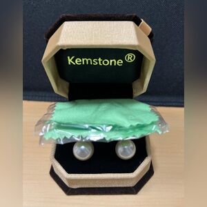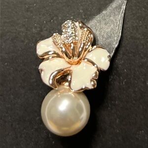 Kemstone Rose Gold Simulated Pearl Flower Clip On Earrings