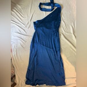 Lulus Reglan Blue Satin One-Shoulder Sash Midi Dress