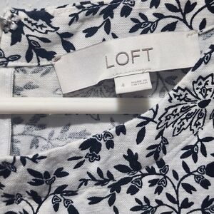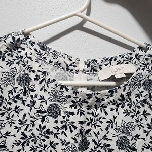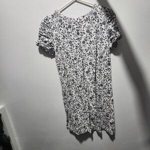 Chic floral dress by LOFT. Features a black and white pattern. Short sleeves with a round neckline. Perfect for casual outings.
