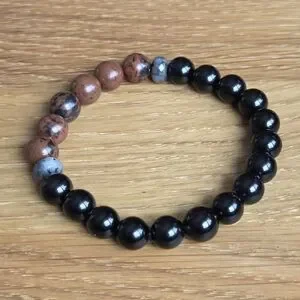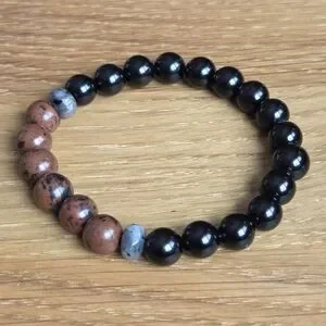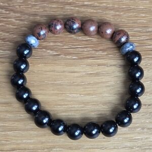 Mahogany Obsidian & Black Onyx Beads Bracelet, Stretch, Hand Crafted