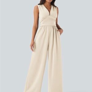 HALARA Cream Sleeveless Jumpsuit