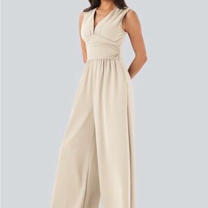 Chic and versatile cream jumpsuit. Sleeveless design with a flattering fit. Ideal for any occasion.