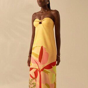 Multicolor Boho Womens Tropical Print Sleeveless Hollow Knot Tube Top Dress
