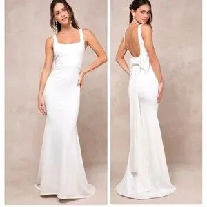 Lulus Loving Fate White Bow Square Neck Backless Maxi Dress Size Large Bridal