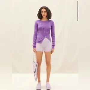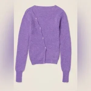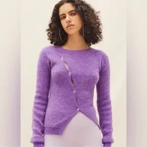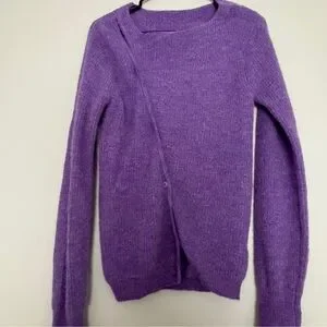 Jacquemus La Maille Pau Purple Alpaca Wool Asymmetrical Button Sweater Size 38