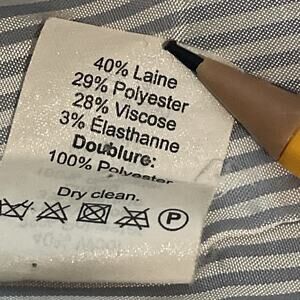 Material: 40% Wool 28% Viscose 3% Elastane Lining: 100% Polyester