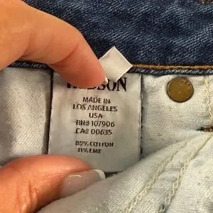 Hudson jeans crafted in the USA featuring a classic straight leg silhouette with a flattering mid rise and clean medium blue wash. Designed with signature flap back pockets, contrast stitching, and a cuffed hem. Premium cotton denim with a structured feel that pairs easily with casual tops, sweaters or elevated everyday looks. Labeled size 27. Stored in a clean, nonsmoking environment.