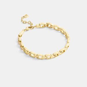 Elegant gold bracelet by Coach. Features a sleek chain design. Perfect for any occasion.