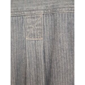 Elevate your casual style with this designer Aeropostale two-tone denim shacket. The mid-length, collared jacket features a classic fit with a button closure and striped pattern. The Western accents and Compagnie Generale model add a touch of sophistication to this versatile piece. Ideal for winter, fall, and spring, it's perfect for riding, walking, cycling, skateboarding, & hiking. Machine washable and made with cotton fabric, this shacket is durable and easy to care for. Don't miss out on adding this must-have to your wardrobe!