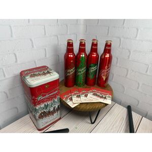 2007 Budweiser Collectible Tin, Empty Aluminum Bottles & Press Board Coasters