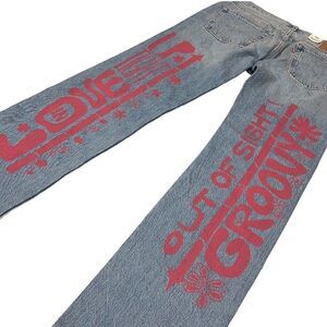 LEVIS 33x34 Premium 501 Original SUMMER LOVE JEANS Eyes Festival Sun Floral Hippie Fun colorful