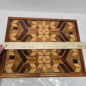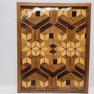 Vintage Wood Mix Mosaic Barn Quilt 3D Wall Art Rustic Cottage Decor Costa Rica. Signed by Artist.