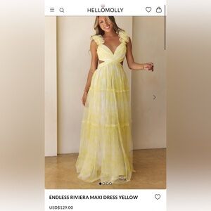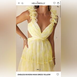 Brand new with tags Hello Molly “Endless Riviera” maxi dress in yellow. Beautiful layered tulle design with floral ruffle straps, flattering cutout waist detail, and flowy tiered skirt. Perfect for weddings, showers, vacations, or spring/summer events.