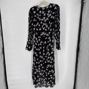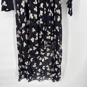 The Kooples Size XS Naive Flowers Chiffon Midi Dress Black Floral NWT