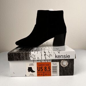 Kensie Lyden Black Suede Ankle Boots Womens 8.5 Block Heel Zip