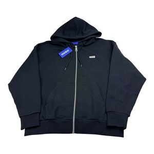 Hugo Boss Nardimez Mens Black Full Zip Hoodie Graphic Logo Medium NWT