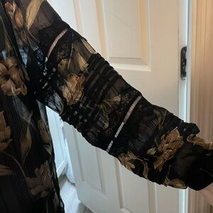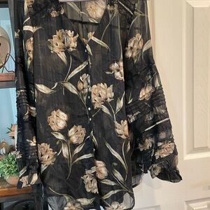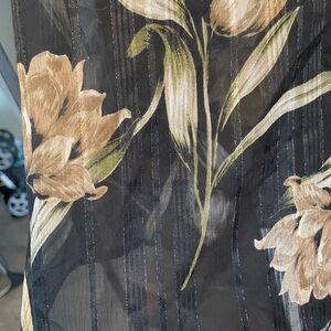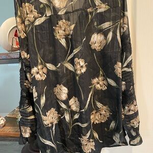 Fig & Flower Anthropologie black sheer button up chiffon blouse w floral print