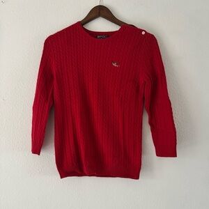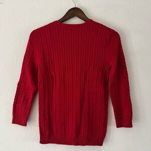 American Living Ralph Lauren cable knit sweater red patriotic preppy modest classic cotton 3/4 sleeve eagle flag embroidery americana old money classy minimalist staple layer layered transitional holiday vacation party date night cozy comfy