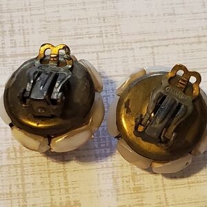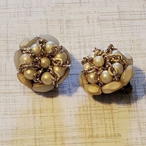 Vintage Elegant Gold Tone And Cream Mother Of Pearl Cluster Clip Earrings Japan