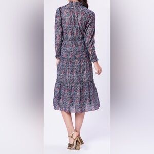 La Vie Rebecca Taylor Lilou Long Sleeve Ruffle Dress In Midnight Navy