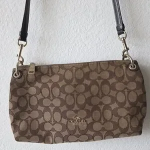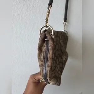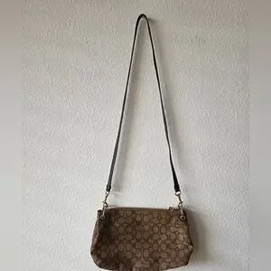 Stylish brown Coach Signature pattern crossbody purse. Perfect for everyday use. No apparent stains. Great condition